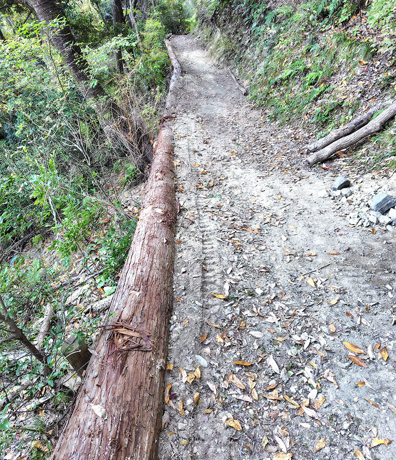 深い緑の葉の中に10㎝前後の大きさの丸い実がいくつもぶら下がっています。この実はアケビのように割れないので、メジロなどの野鳥は食べることができず、タヌキなどの哺乳類が食べることが多いようです。そのためか、皮にアケビのような苦みがなく皮まで甘いのです。