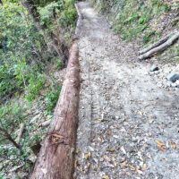 ゆるい坂を上り切った信号の無い交差点で、ガードレールのある細い側道を上がっていきます。