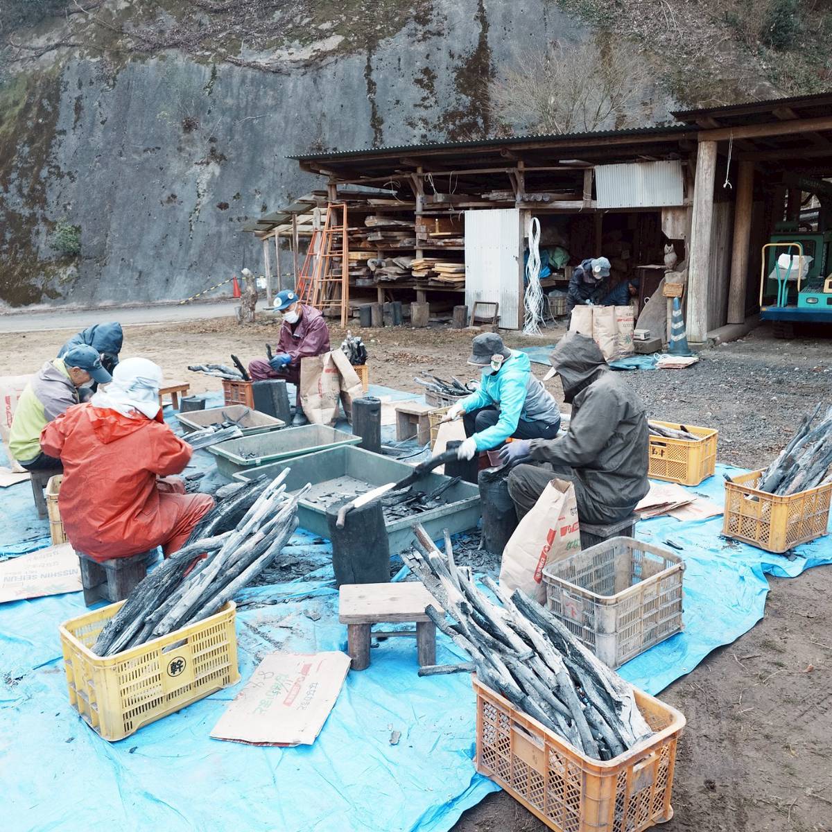 げんきの森の炭窯で焼いた黒炭の窯出し作業を体験。